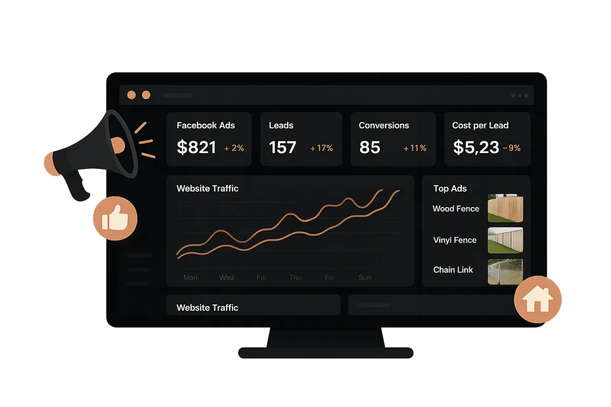 We help fence companies generate qualified leads using Facebook & Instagram ads, combined with AI-powered scheduling systems to automate appointment booking and follow-up.